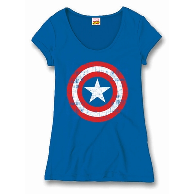 Originální dámské modré tričko s krátkým rukávem. Potisk na tričku je motiv Captain America - Kapitán Amerika.