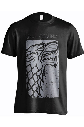 Pánské triko s potiskem vlka - Stark ze série Game of Thrones (Hra o trůny). Tričko je černé barvy s krátkým rukávem.