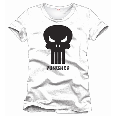 Originální pánské triko s potiskem Punisher - Kat. Tričko je bílé barvy a má krátký rukáv.