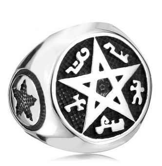 Nerez ocelový prsten s pentagramem. Prstýnek Supernatural - pentagram je stříbrné barvy a je vhodný pro muže i ženy.