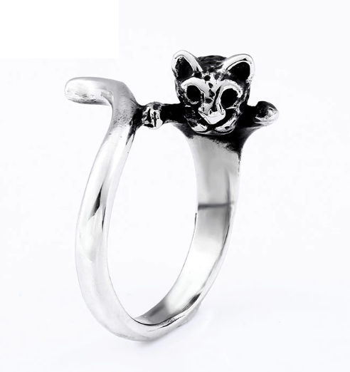 Nerez ocelový prstýnek s kočkou. Prsten kočka je skvělý doplněk na ruku pro milovníky kočiček.