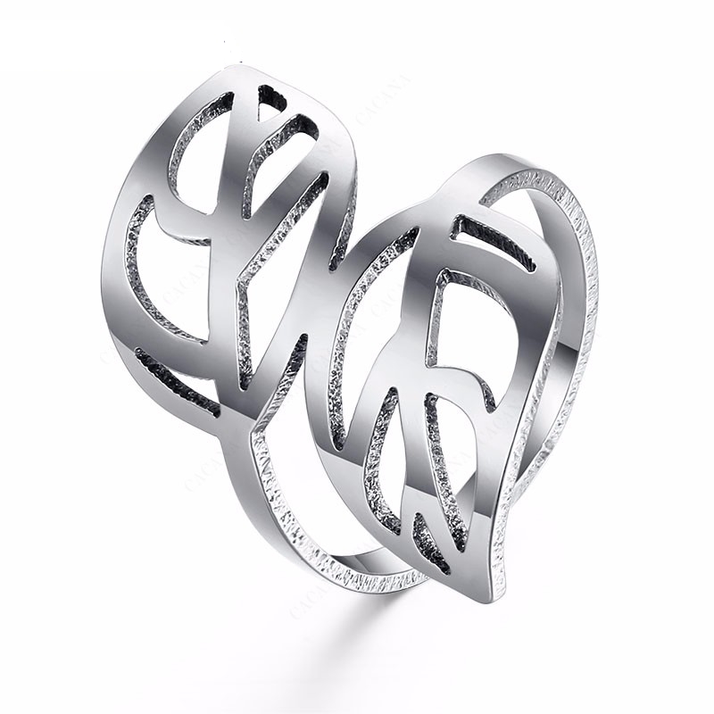 Nerez ocelový prsten s lístečky. Prstýnek listy je stříbrné barvy.