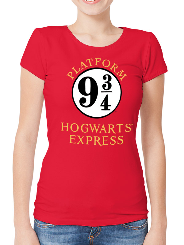 Licencované dámské tričko s s motivem Harry Potter - nástupiště 9 a 3/4. Triko je červené barvy a má krátký rukáv.