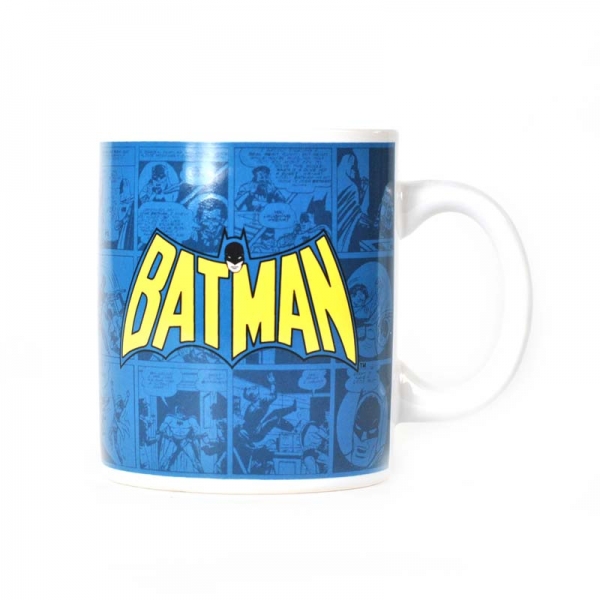 Stylový hrnek s batmanem. Tento hrnek Batman je modré barvy, v pozadí lze vidět komiksy s batmanem a v popředí je žluté Batmanovské logo a jeho hlava. Je vhodný pro všechny opravdové fanoušky!