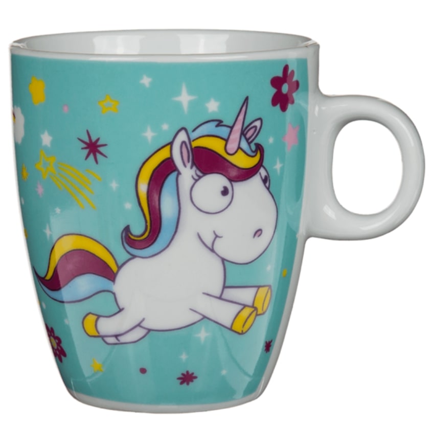 Krásný dětský ale i dospělácký téměř pohádkový hrnek s jednorožcem. Na hrníčku je jednorožec s barevnou hřívou a rohem. Hrníček má objem cca 150 ml.