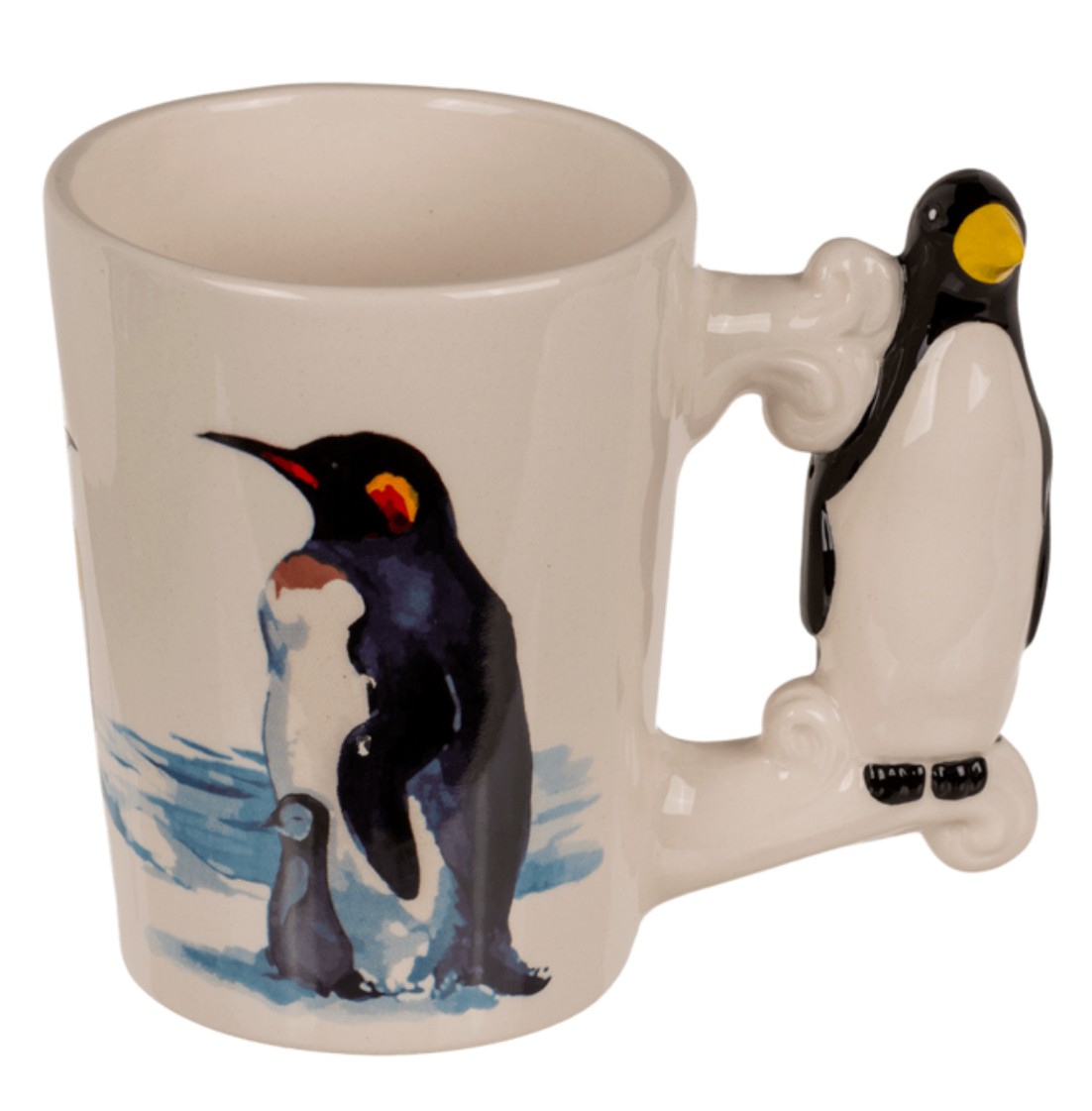 Zvířecí hrnek s krásným černobílým tučňákem. Hrnek tučňák je bílé barvy a je na něm nakreslený tučňák, taktéž na uchu je další tučňáček. Originální dárek či doplněk do domácnosti každého milovníka tučňáků. Neboj se odlišit a vypij si kávu či čaj z tohoto stylového tučňáčího hrnku!