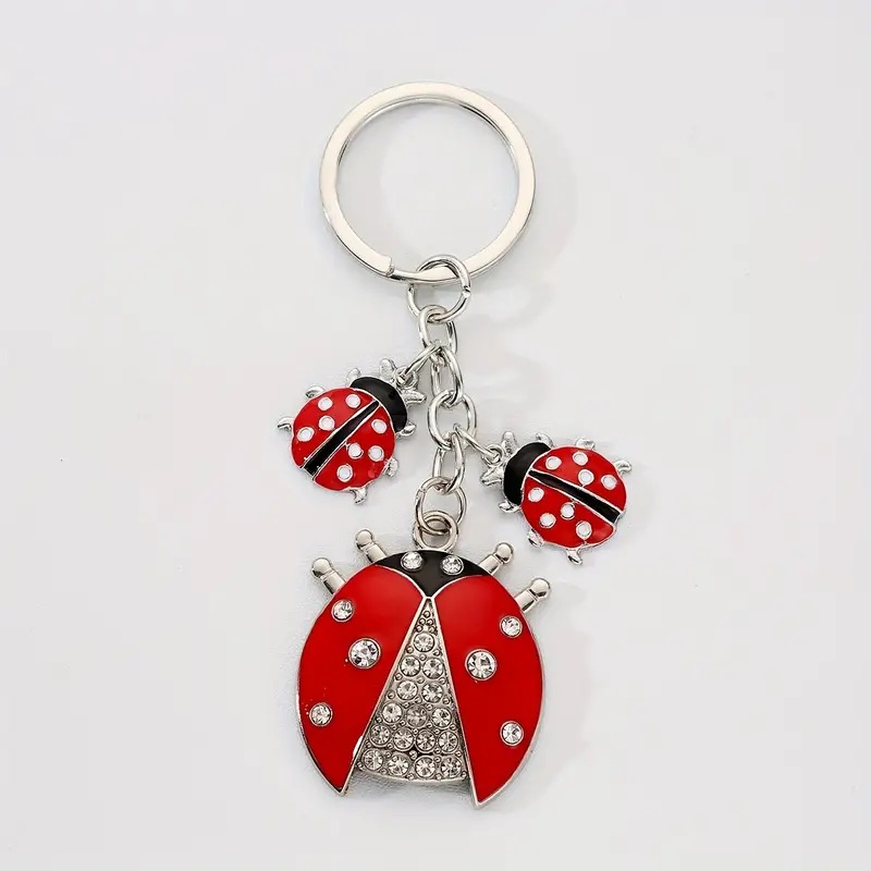 Klíčenka - přívěsek na klíče - ve tvaru roztomilé velké berušky a dvou malých berušek. Klíčenka beruška se skládá z velké berušky, která má na sobě místo teček třpytivé krystalky. Malé berušky mají na sobě osm bílých teček.