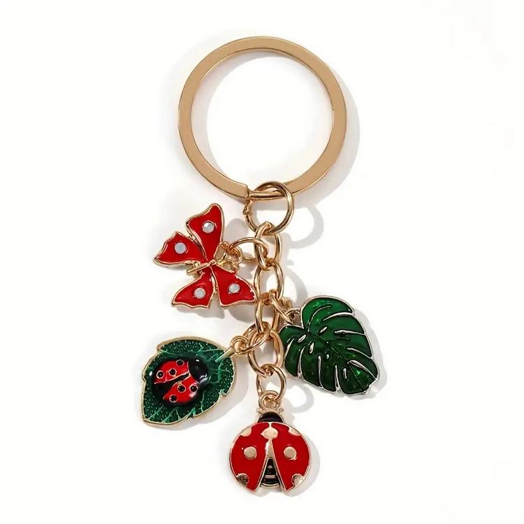 Klíčenka - přívěsek na klíče - ve tvaru roztomilé berušky, zeleného listu, listu s beruškou a s červeným motýlkem. Přívěsek na klíče beruška má rovnou 4 různé přívěsky.