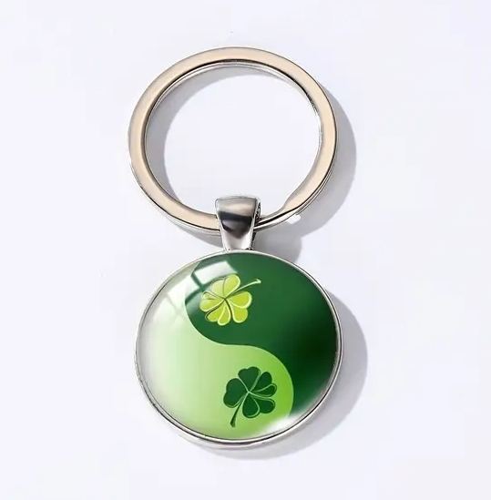 Klíčenka - přívěšek na klíče - zelený čtyřlístek pro štěstí - yin yang (jin jang). Klíčenka se čtyřlístkem je originální dárek pro každého, komu přejete štěstí.