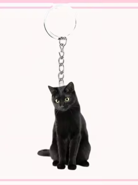 Klíčenka - přívěsek na klíče - sedící majestátná kočka. Klíčenka kočka se bude skvěle vyjímat na klíčích či kabelce milovníka koček. Klíčenka je vyrobena převážně z akrylu a je 2D.
