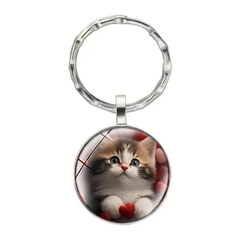 Klíčenka - přívěsek na klíče - s kočkou - koťátkem. Klíčenka kočka se bude skvěle vyjímat na klíčích milovníka koček. Kočička má v tlapičkách srdíčko.