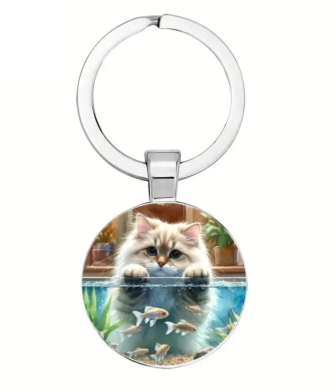 Klíčenka - přívěsek na klíče - s kočkou. Klíčenka kočka, co se dívá na rybičky, se bude skvěle vyjímat na klíčích milovníka koček.