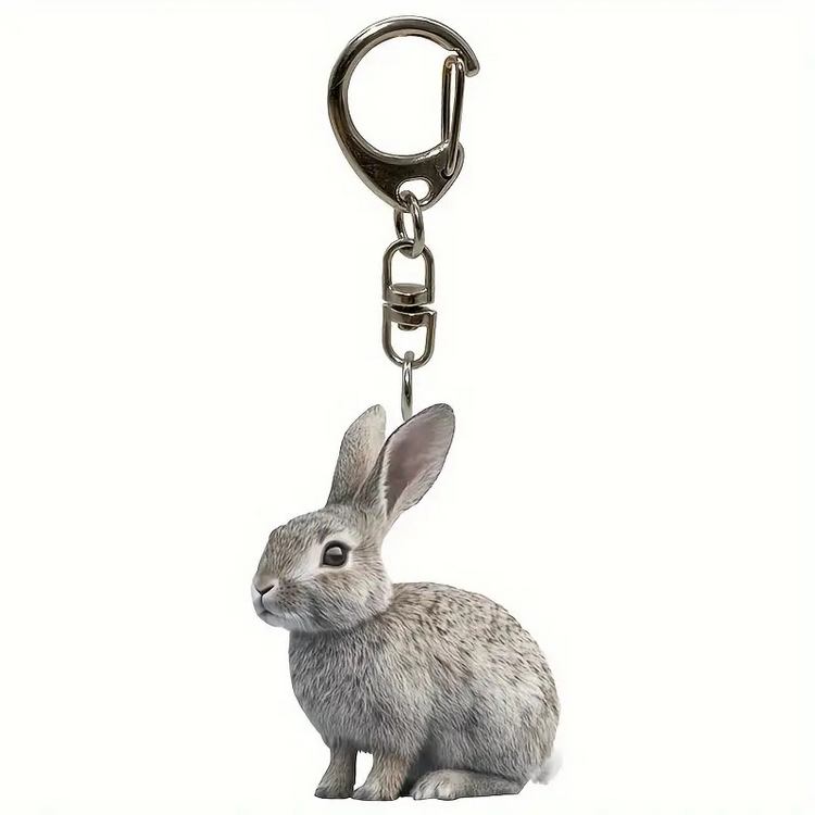 Roztomilý přívěsek na klíče s malým šedým králíčkem / zajíčkem. Klíčenka králík - zajíc je vhodná pro všechny milovníky těchto chlupatých zvířátek. Přívěsek je 2D akrylový a potištěný z obou stran.