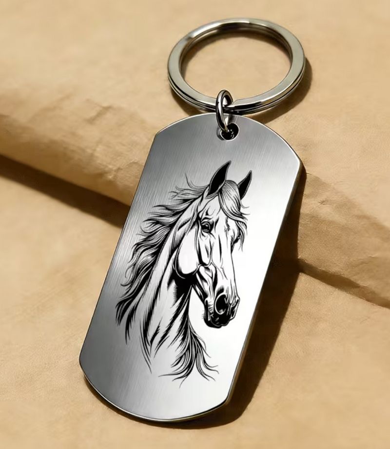Originální ocelový přívěšek na klíče s hlavou koně. Klíčenka kůň je skvělý doplněk na klíče pro milovníka koní.