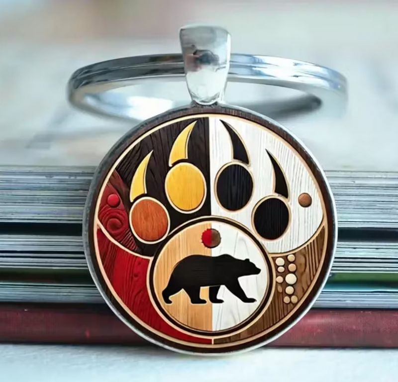 Klíčenka - přívěšek na klíče - medvěd a medvědí tlapa. Klíčenka s medvědem je vhodná na připnutí na klíče, na kabelku, na batůžek, či kam tě napadne.