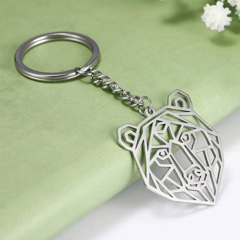 Klíčenka - přívěsek na klíče - ve tvaru hlavy medvěda. Klíčenka origami medvěd je vhodná pro všechny milovníky medvědů. Klíčenka je vyrobena z nerez oceli.