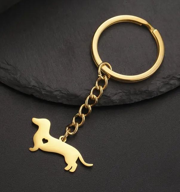 Klíčenka pes - jezevčík (ocel) - zlatá