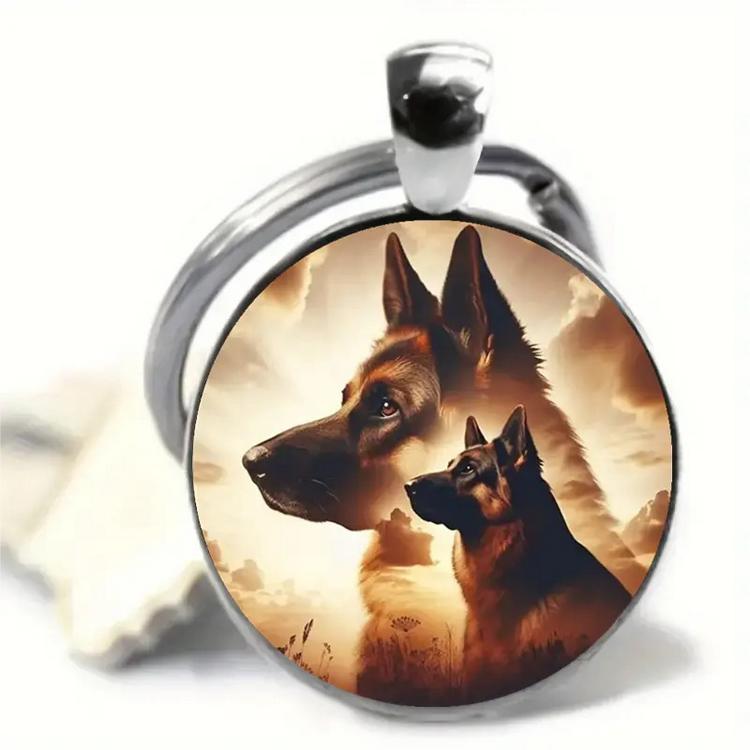 Krásný přívěsek na klíče se psem - německým ovčákem. Klíčenka s populárním plemenem německý ovčák je vhodná pro všechny milovníky psů. Na klíčence je velký a menší německý ovčák.