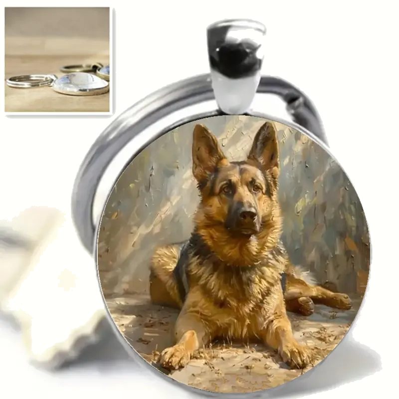Krásný přívěsek na klíče se psem - německým ovčákem. Klíčenka s populárním plemenem německý ovčák je vhodná pro všechny milovníky psů.