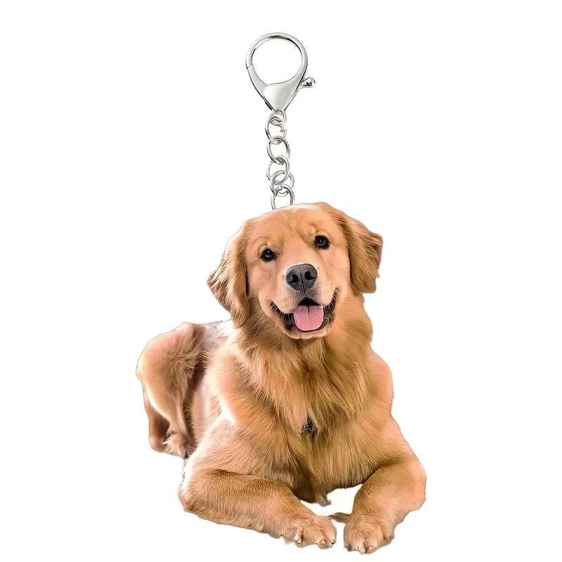 Stylový 2D přívěsek na klíče se psem - zlatým retrívrem. Na přívěsku je krásný velký zlatý retrívr, co leží. Klíčenka s populárním plemenem zlatý retrívr je vhodná pro všechny milovníky psů.