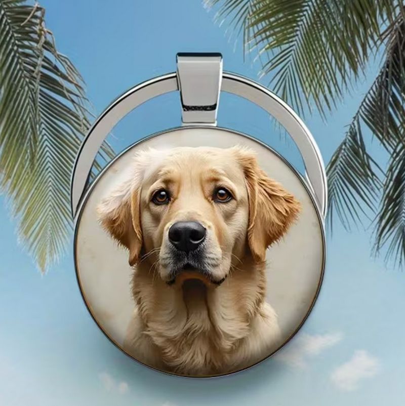 Stylový přívěsek na klíče se psem - zlatým retrívrem. Na přívěsku je krásný velký zlatý retrívr. Klíčenka s populárním plemenem zlatý retrívr je vhodná pro všechny milovníky psů.