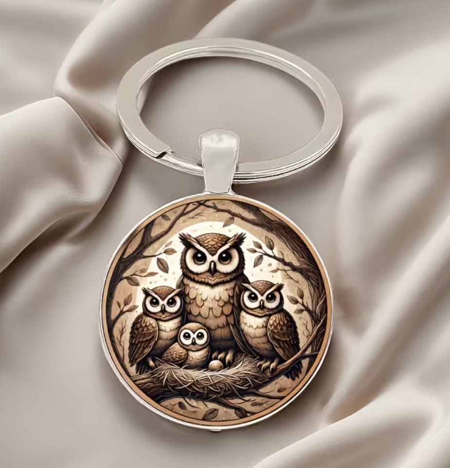 Klíčenka - přívěšek na klíče - moudrá sovička a malé sovičky. Klíčenka sova je vhodná na připnutí na klíče, na batůžek, či kam tě napadne.