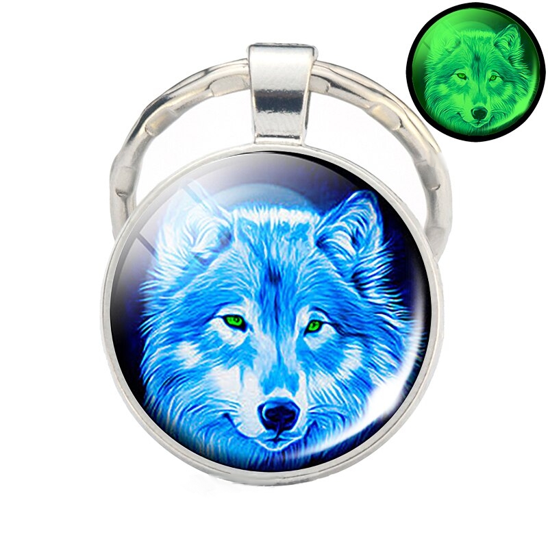 Klíčenka - přívěsek na klíče - vlk. Po nasvícení (třeba lampičkou) svítí ve tmě.