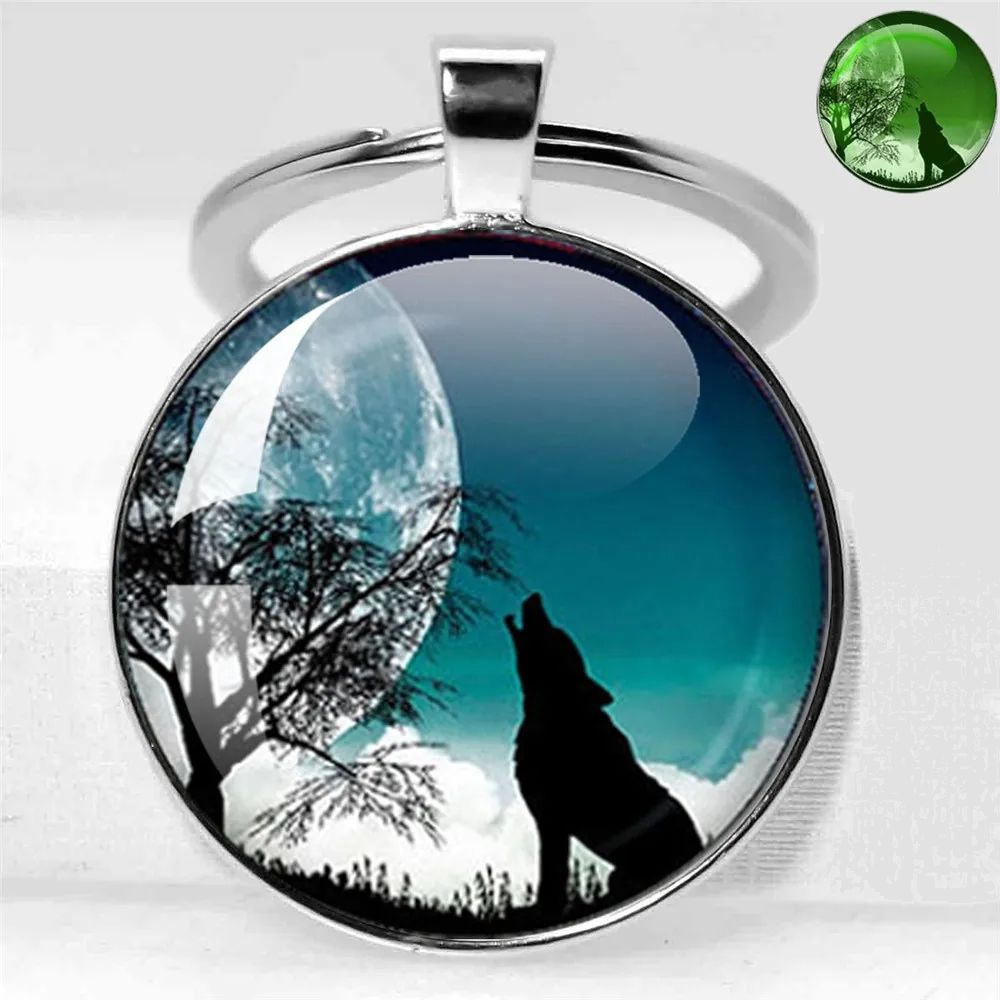 Klíčenka s vlkem. Klíčenka, na které je vlk, po nasvícení (např. lampičkou) svítí ve tmě.
