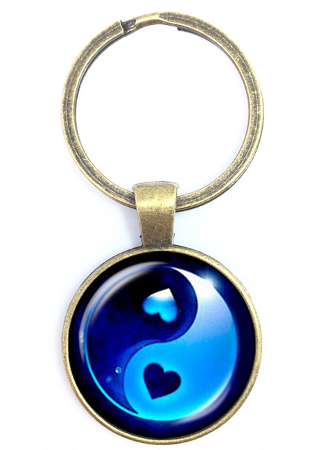 Klíčenka - přívěšek na klíče - Yin yang (znaky Jin a jang) znázorňující temnotu a světlo. Na přívěsku jsou dvě srdíčka.