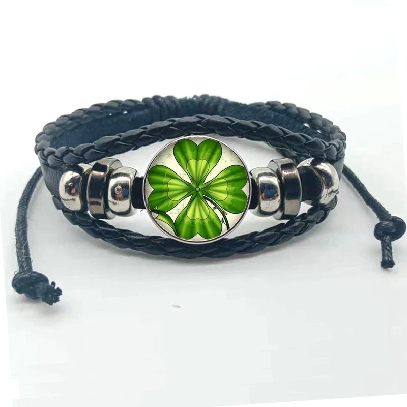 Náramek se zeleným čtyřlístkem pro štěstí. Náramek můžete nosit jen tak pro radost, nebo ho někomu darovat.