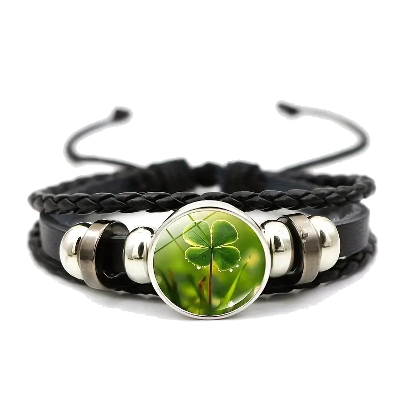 Náramek se zeleným čtyřlístkem pro štěstí. Náramek můžete nosit jen tak pro radost, nebo ho někomu darovat.