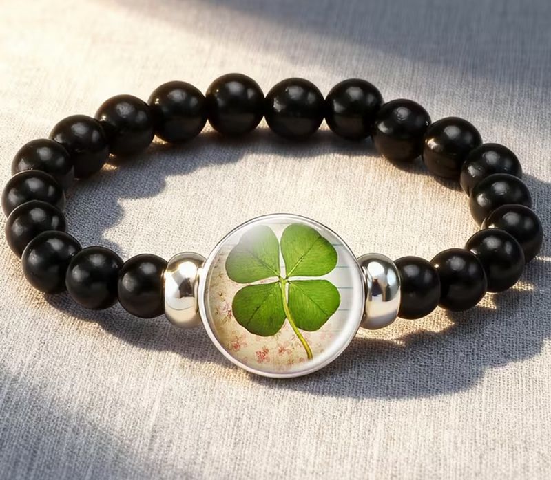 Náramek se zeleným čtyřlístkem pro štěstí. Náramek můžete nosit jen tak pro radost, nebo ho někomu darovat.