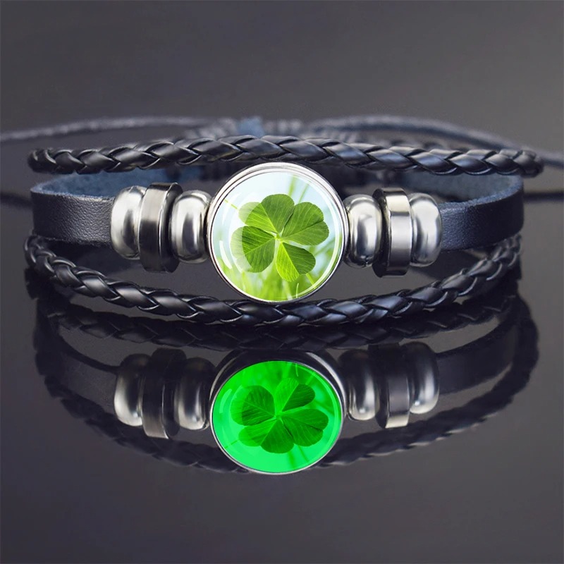 Náramek zelený čtyřlístek pro štěstí. Po nasvícení svítí ve tmě. Vhodný pro muže i ženy. Skvělý dárek pro všechny blízké, kterým přejeme štěstí.