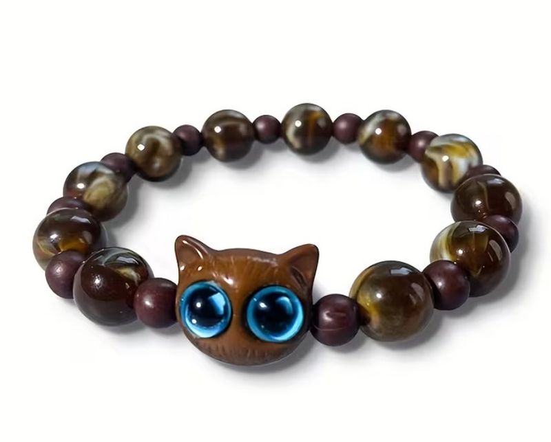 Kočičí náramek s hlavou kočky s modrýma očima. Náramek kočka je skvělý doplněk na ruku milovníka koček.