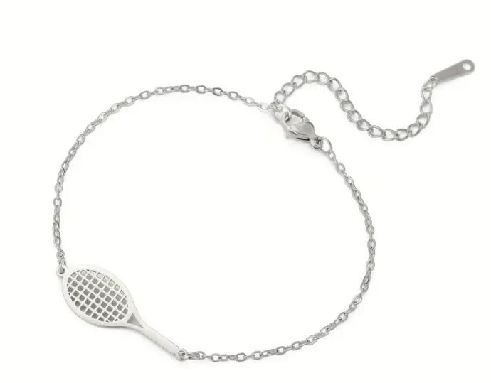 Ocelový náramek s tenisovou raketou je stylový doplněk pro tvou ruku či kotník. Vhodné pro všechny milovníky tenisu.