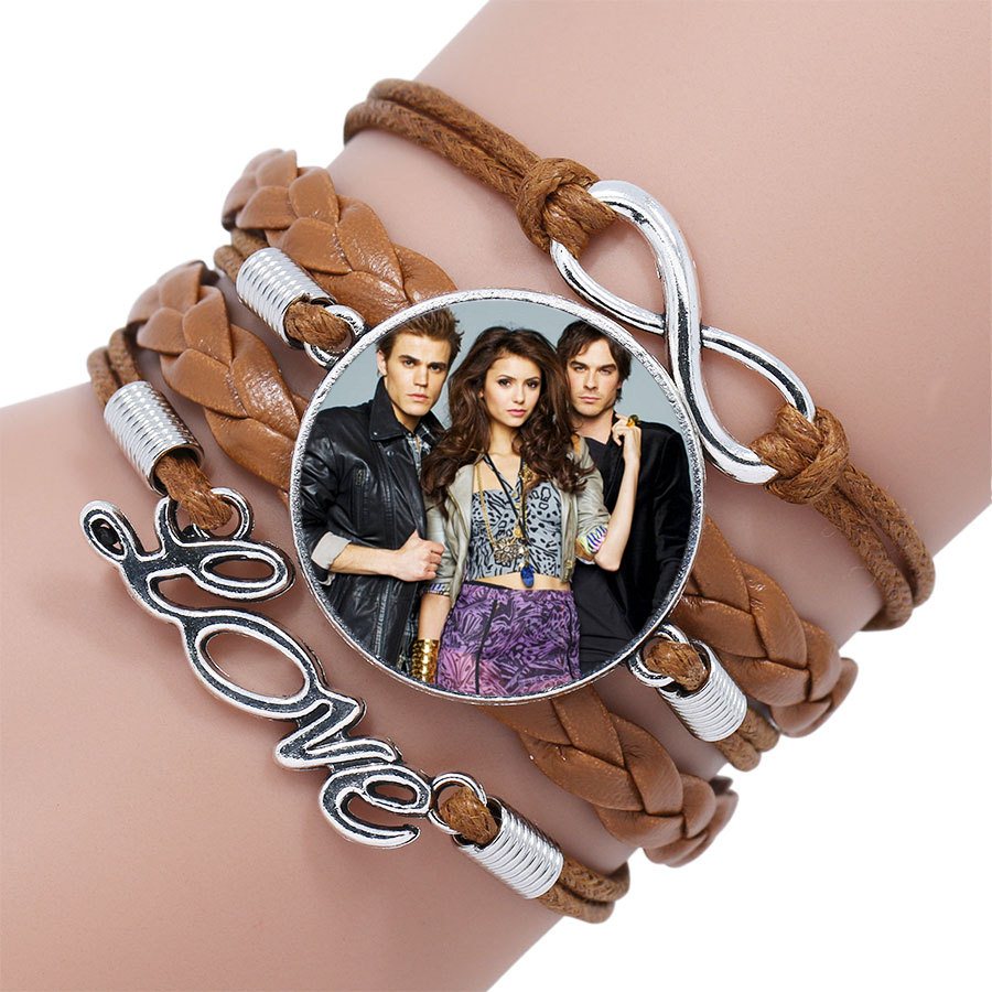 Náramek s motivem The Vampire Diaries (Upíří deníky), na kterém jsou zobrazeny postavy Elena a Gilbert a upíří bratři Salvatarovi - Damon a Stefan.