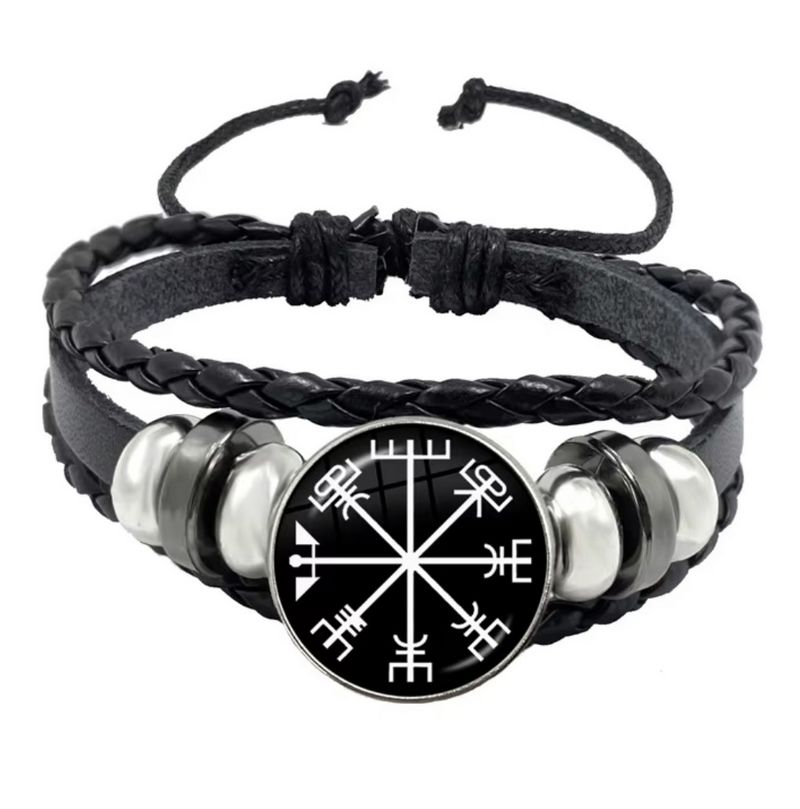 Originální černý náramek se severskými motivy - vikingský kompas - vegvisir.
