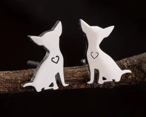 Nerez ocelové náušnice ve tvaru pejska čivavy. Náušnice čivava jsou super doplněk na uši pro milovníka čivav.