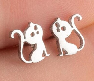 Ocelové náušnice ve tvaru roztomilé kočky. Náušnice kočka jsou vhodné pro všechny milovníky koček.