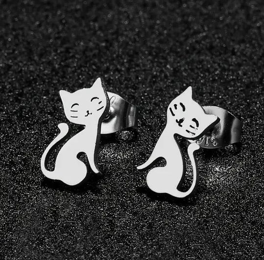 Ocelové náušnice ve tvaru roztomilé kočky. Náušnice kočka jsou vhodné pro všechny milovníky koček.