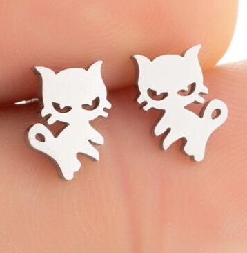 Ocelové náušnice ve tvaru roztomilé kočky. Náušnice kočka jsou vhodné pro všechny milovníky koček.