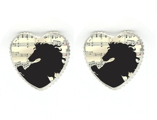 Stylové bižuterní náušnice s koněm. Náušnice kůň jsou ve tvaru srdce a jsou vhodné pro všechny milovníky koní.