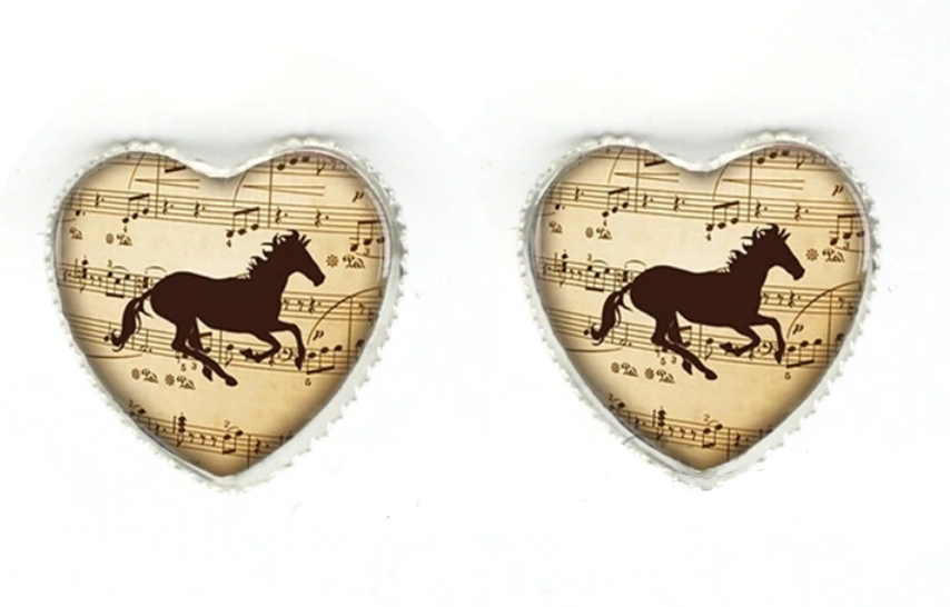 Stylové bižuterní náušnice s koněm. Náušnice kůň jsou ve tvaru srdce a jsou vhodné pro všechny milovníky koní.