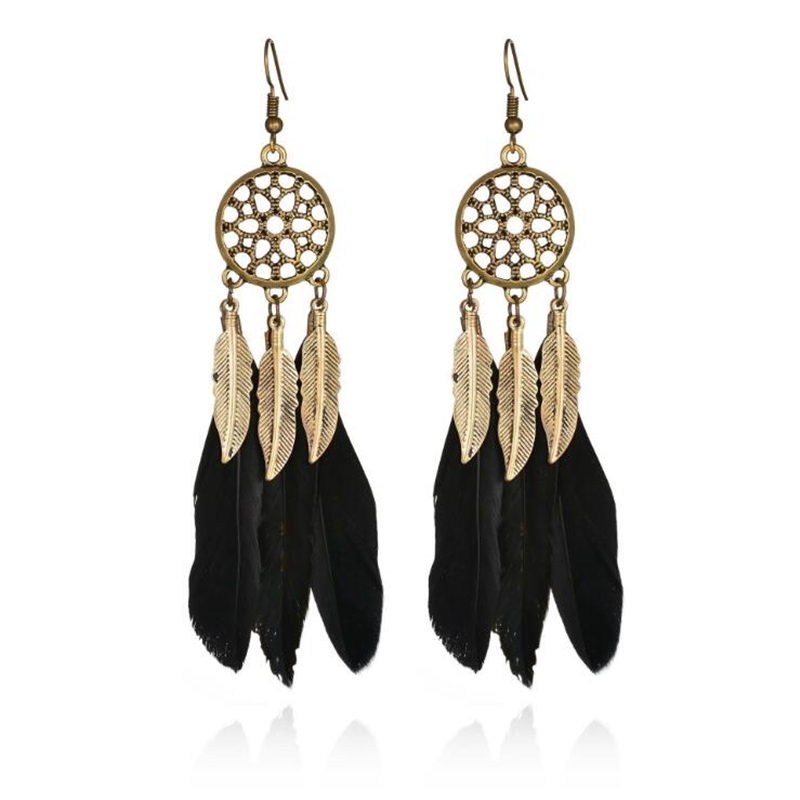 Stylové bižuterní náušnice ve stylu lapače snů s pírky.
