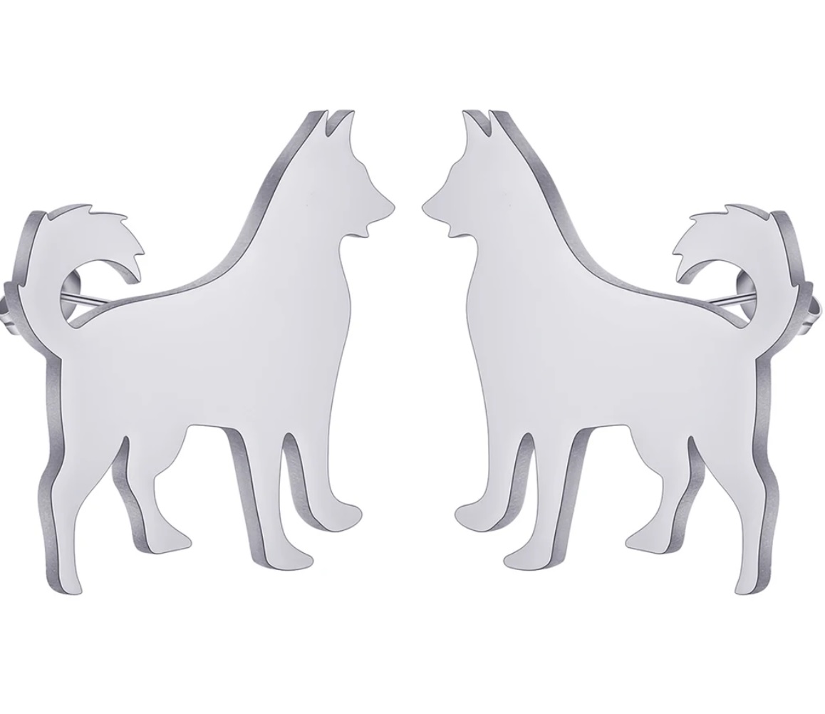Ocelové náušnice se psem. Vhodné pro všechny milovníky psů.