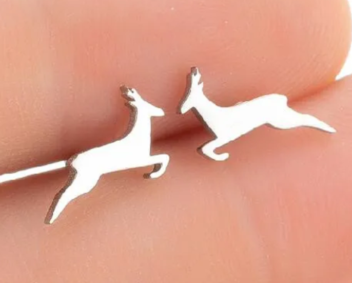 Ocelové náušnice srnec. Náušnice srnec jsou stříbrné barvy.
