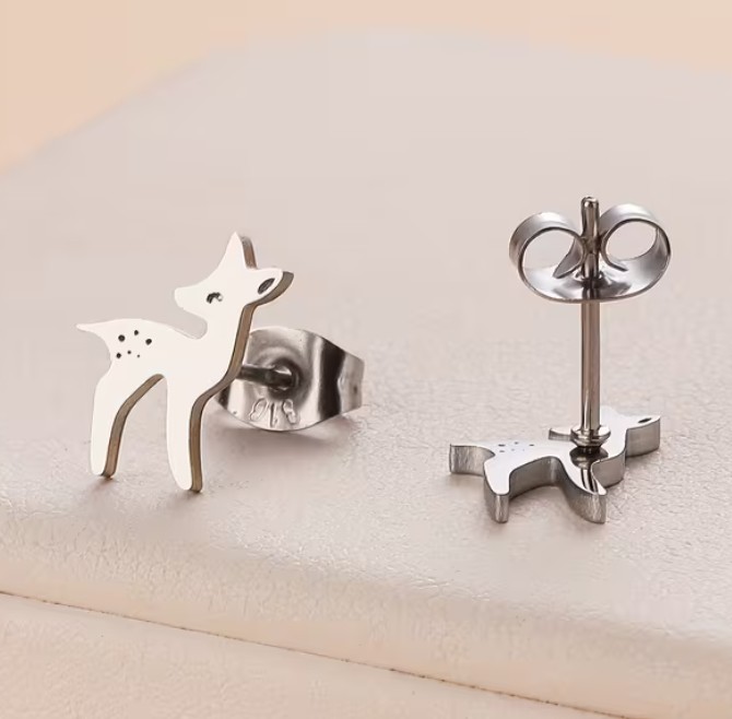 Nerez ocelové náušnice ve tvaru roztomilé srnečky.