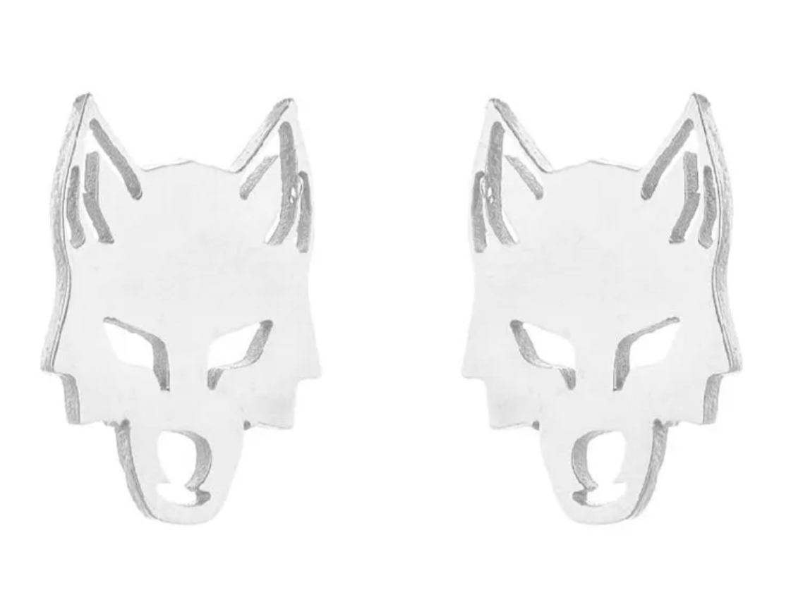 Ocelové náušnice ve tvaru hlavy vlka. Náušničky s vlkem jsou vhodné pro všechny milovníky vlků.