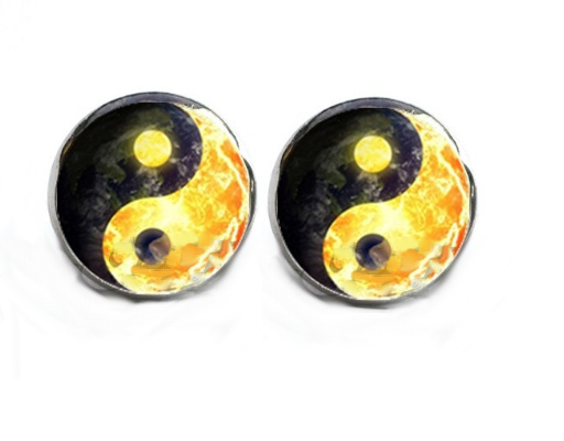 Náušnice znázorňující dvě odvrácené strany temnotu a světlo - Yin yang (jin a jang).