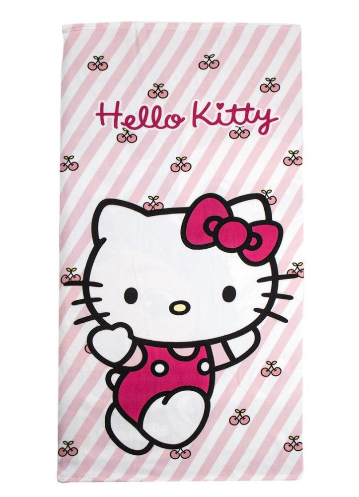 Oficiálně licencovaná bavlněná rychleschonoucí osuška Hello Kitty. Ručník s roztomilou bílou kočičkou Hello Kitty, která má na hlavě růžovou mašli, je vhodný pro děti i dospělé.